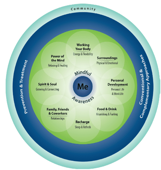 In the field of wellness there are a variety of focused models that like military readiness, focus on the individual. The U.S. Department of Veterans affairs in particular embraced over the past several years the Whole Health model, โAn approach to health care that empowers and equips people to take charge of their health, well-being, and live their life to the fullest.โ Just as the military sees unit readiness made up of individual servicemember readiness, the Whole Health model, โIs fueled by the power of knowing yourself and what will really work for you in your life. Only youhave these insights and this knowledge.โ[2]