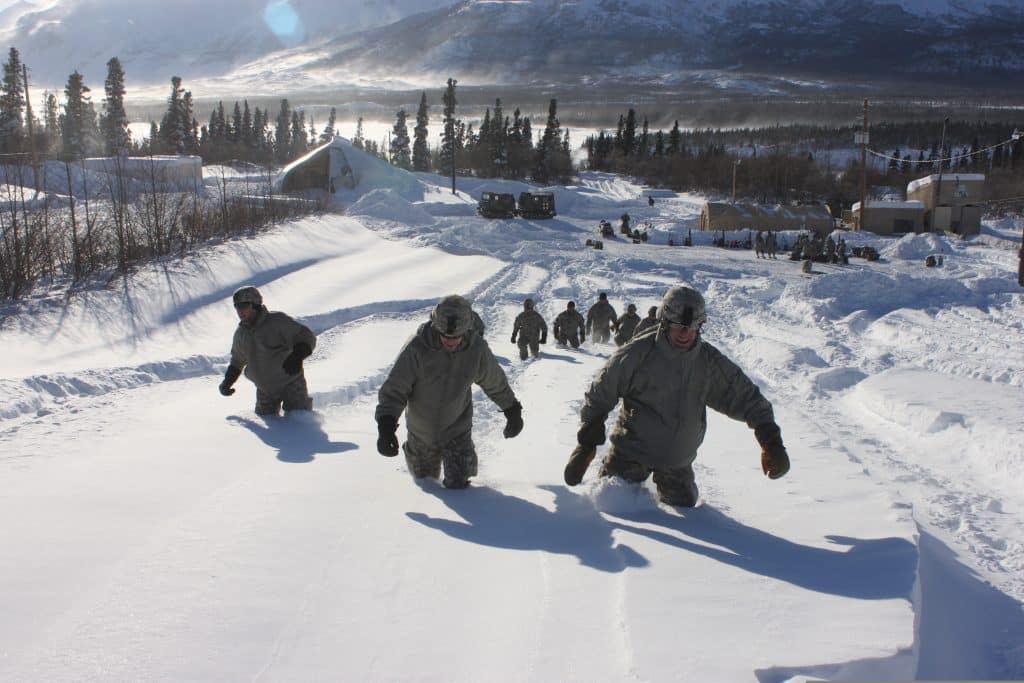 Basically, the water flowing in the river had just recently been ice. It came right off the glacier. I remember that I took maybe a dozen steps before I went numb below the waist. After that, I shuffled along unable to feel my legs. On the far side of the river was a small campfire which was more for show than anything else. My clothes were soaked with freezing water, just like everyone else’s were. We all shivered until an Army bus picked us and took us back to our barracks. Everybody took a steamy hot shower and collapsed in their bunk. That was the end of the day’s training.