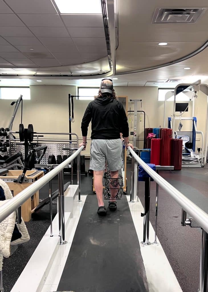 For instance, we were fortunate enough to go to Vail through the Vail Veterans Program. It had been just over 10 months since my injury. Two months prior to the trip, I had my last major surgery. They removed my external fixator, inserted a titanium rod into my tibia, hammered that rod into place through my knee joint, took bone from my hip, and grafted it into the middle of my tibia.