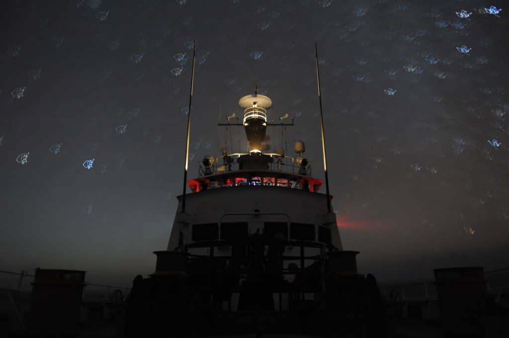 For what felt like an eternity we scanned the nothingness that surrounded us. The sea was a matt darkness. The horizon didn’t exist, the stars just came down to a line then stopped. Sweat rolled down my face and the backs of my hands. My Coast Guard issue t-shirt was damp against the inside of my vest, soaked through with sweat. The diesel engine muttered and grumbled as we came up in speed for a while then decelerated to search again. Disembodied voices of my shipmates aboard the Cutter spoke through the headsets in an almost whisper of static and electronic noise.