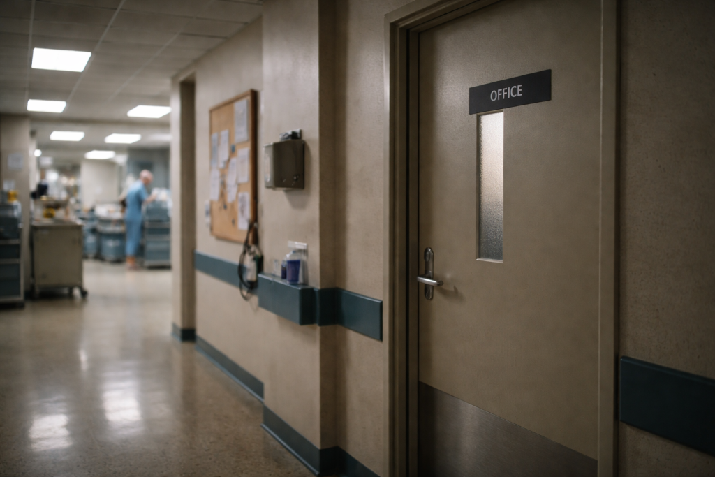 Same board. Same pager. Same office door closed.