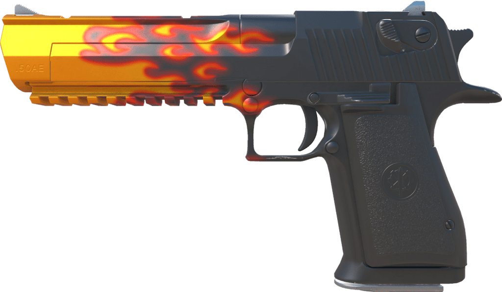 - The Desert Eagle | Blaze mimics custom engraving and chrome polish found in high-end pistol craftsmanship.