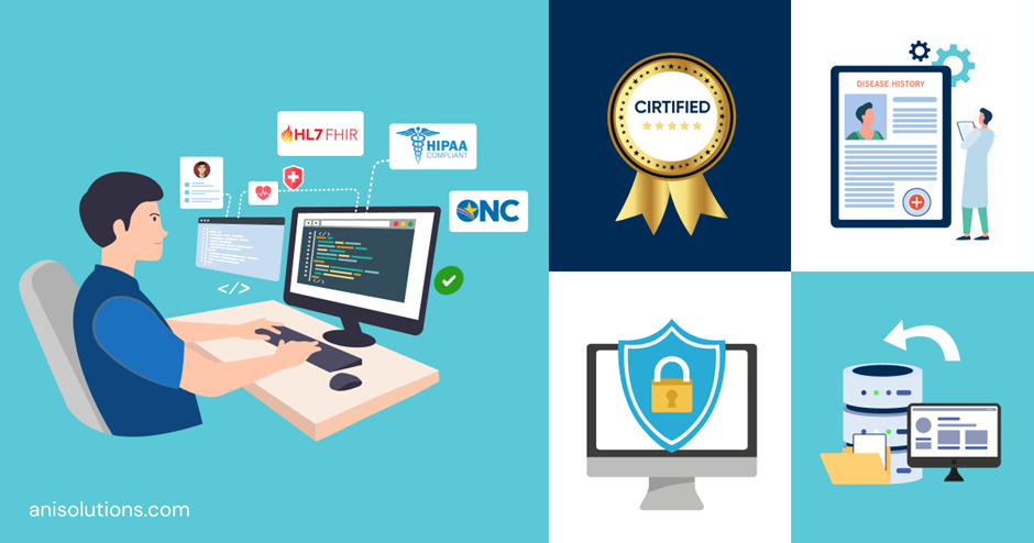 That’s why, when you are hiring developers to build your own EHR or EMR software, check for their EHR developer certification, such as HL7 FHIR certification, ONC Health IT certification, and HIPAA certified developer certification.