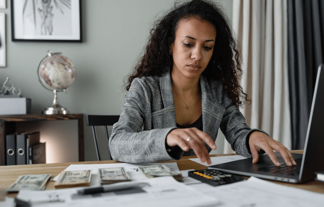 Image source:https://www.pexels.com/photo/a-woman-in-plaid-blazer-using-her-laptop-and-mobile-phone-6693656/