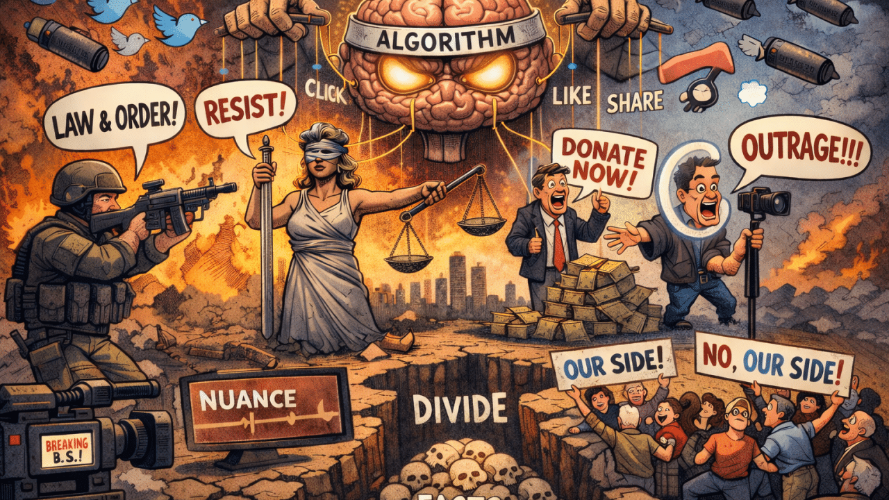 Here’s the ugly truth: the American brain is now a slot machine. Pull the lever, see tragedy, get dopamine, spit opinion. The prize isn’t understanding. It’s engagement — adrenaline with typos.