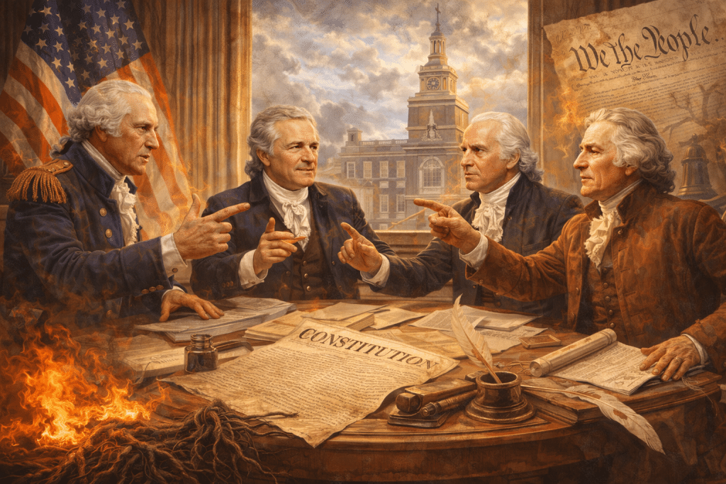 This article is a fictionalized interview. The dialogue is not presented as verbatim quotation. Each response is a literary synthesis grounded in the Founders’ documented writings, correspondence, speeches, and recorded positions.