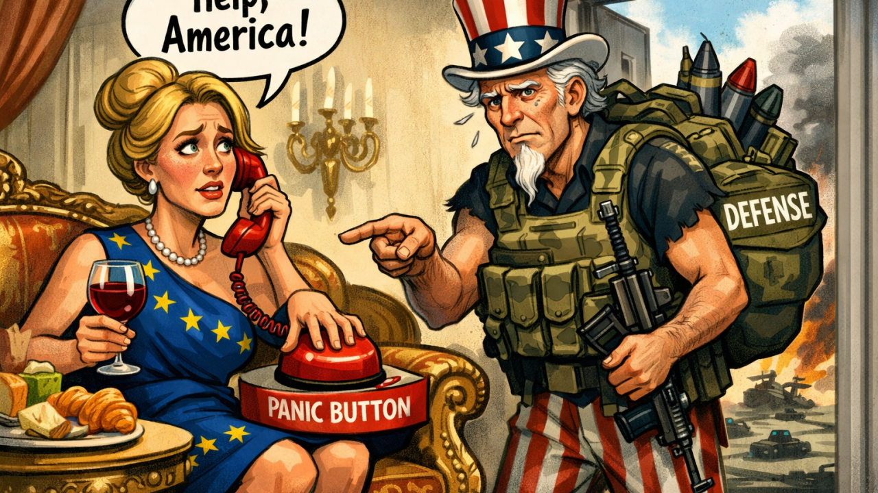 Europe has spent years pretending that dependency is a sophisticated moral posture. It isn’t. It’s dependency. Put a silk scarf on it, seat it on a panel in Brussels, hand it a briefing paper about shared values and resilient democracies, and it is still a rich continent waiting for the Americans to come downstairs with a gun when the windows start rattling.