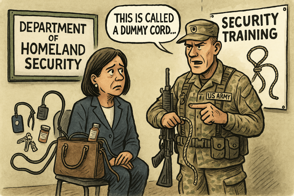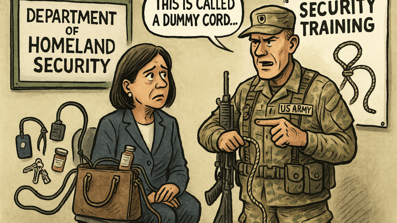 The offer came after the Secretary of Homeland Security had her purse stolen from a Washington, D.C., burger joint. Among the missing items: her Homeland Security access badge, $3,000 in cash, her passport, prescription medications, driver’s license, blank checks, and her apartment keys. “In Ranger School, losing that much gear would earn you an immediate NO-GO,” Staff Sergeant Inharmsway observed dryly.